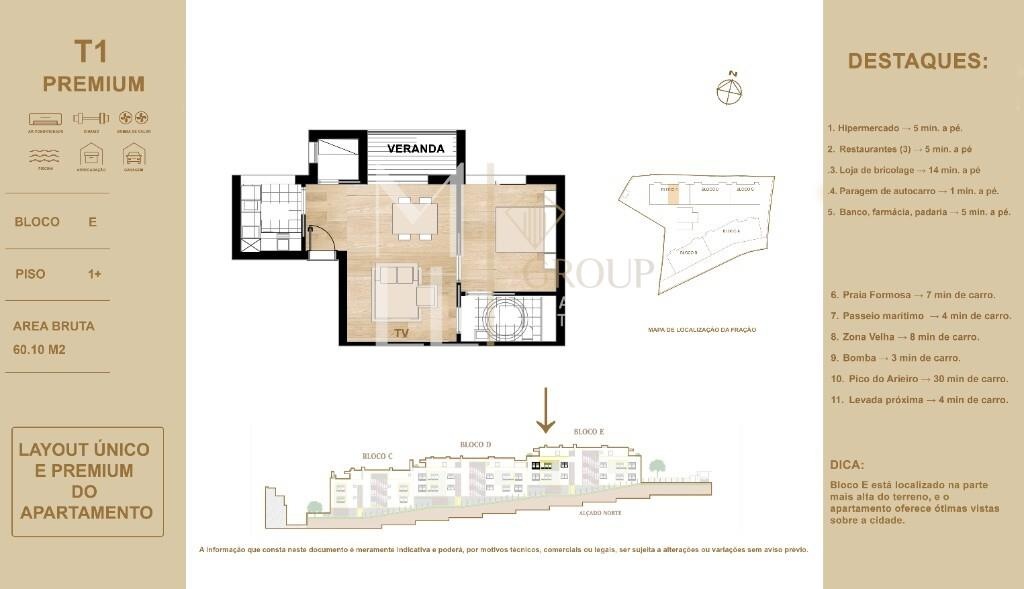 Apartamento T1 único neste edifício, pois trata-se de um " lay out " totalmente diferente, com alteração dos espaços fazendo assim com que o quarto se torne maior, a sala se torne maior, sendo muito mais agradável de viver no apartamento.