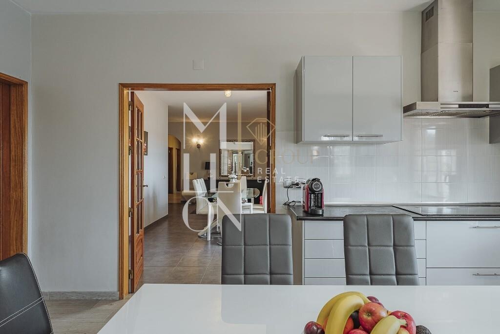 Cozinha espaçosa e totalmente equipada, com acesso directo à lavandaria e ao terraço, perfeita para quem gosta de cozinhar e viver a casa por inteiro